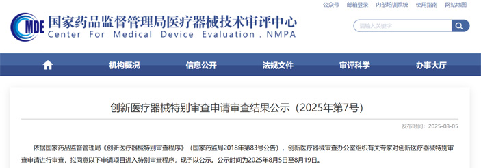 新!10款医疗器械进入创新通道 NMPA公示今年第七批创新医疗器械特别审查申请审查结果,有10款创新产品获准创新医疗器械特别审查程序。10款产品分别来自于心血管、骨科、糖尿病、影像、肿瘤等领域。其中心血管依旧是创新高地,有4款产品入选,包括以心的经导管主动脉瓣系统、先健的镍钛合金动脉导管未闭封堵器、微创投资的纳秒脉冲电场消融系统(上海商阳医疗科技有限公司)以及晨兴的房间隔造孔心房分流器。 返回列表